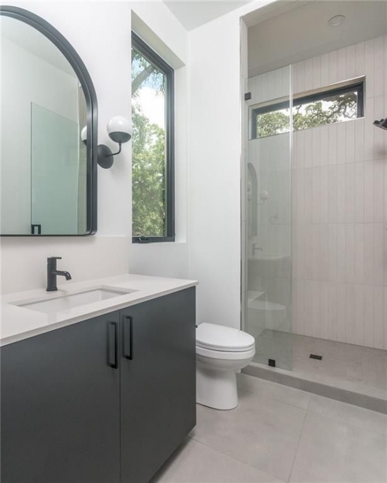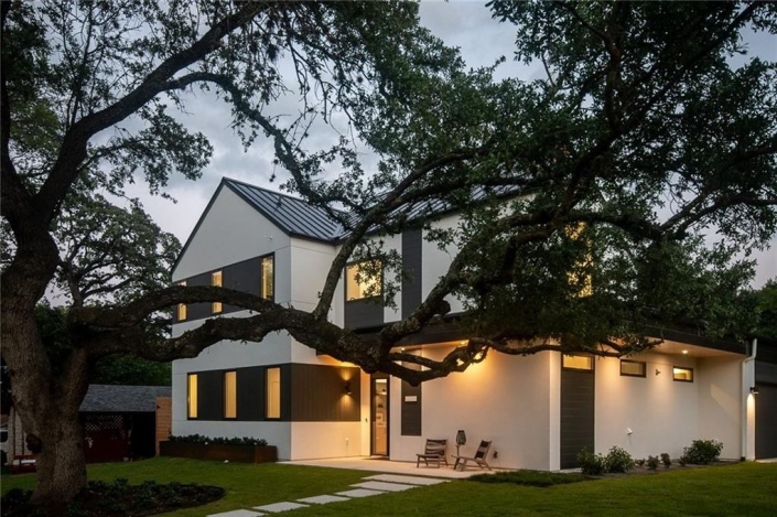 This new construction luxury home was designed by Root Architecture and interior selections by SLIC Design. Located in the South Lamar district of 78704 offering the best of both worlds, the charm of south Austin with access to all of the amenities along South Lamar. Just minutes away from restaurants, coffee shops, Tom Lasseter Park, Hike and Bike trail & downtown Austin.The thoughtful design boasts an abundance of natural light, spacious rooms, high ceilings, and high-end finishes making it an entertainer’s dream. The wall of glass along the backside of the house makes the 280 sqft covered patio feel like an extension of the interior. The chef’s kitchen features Viking Appliances, Wine Fridge, 36″ cooktop, double oven, under cabinet microwave, 42″ built-in fridge and a walk-in pantry. The large laundry/mud room on the first floor comes with a built-in sink, hanging rods, tons of storage, and a bench with cubbies for all ages. Also on the main level is a guest bedroom with an en-suite bathroom making for a great guest suite or home office. Upstairs you will be welcomed by a second living area with a wet bar. There are two secondary bedrooms with two bathrooms in addition to the owner’s suite on the second level.The owner’s suite has an incredible walk-in closet with built-in’s and a spa-like bathroom with beautiful floor-to-ceiling tile, a giant double shower, dual sink vanity, quartz countertop & free standing soaking tub.Construction Features: Spray Foam Insulation, Dual Tankless Water Heaters, Dual HVAC system, Full Gutters, Drainage and Irrigation system, Stucco and Hardie siding with a Metal and TPO roof. Home Finishes: White Oak Hardwood Floors, Quartz Counters, Viking Appliances, Contemporary Lighting, Smooth Drywall Finish, Pre-wired for Security and In-Home Speakers.